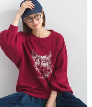 F0301 印花長袖貓衛衣(酒紅色)