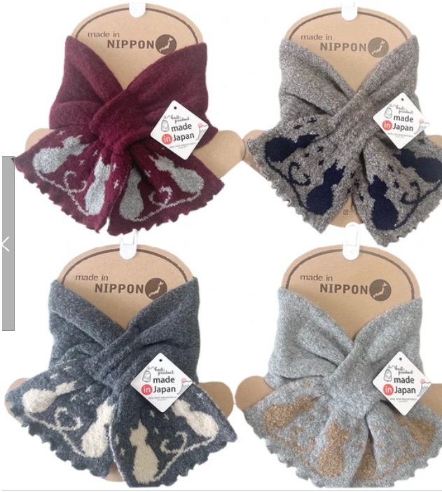 F0354 圍巾穿插式貓咪圖案 短款(深灰/淺灰/紅/摩卡)