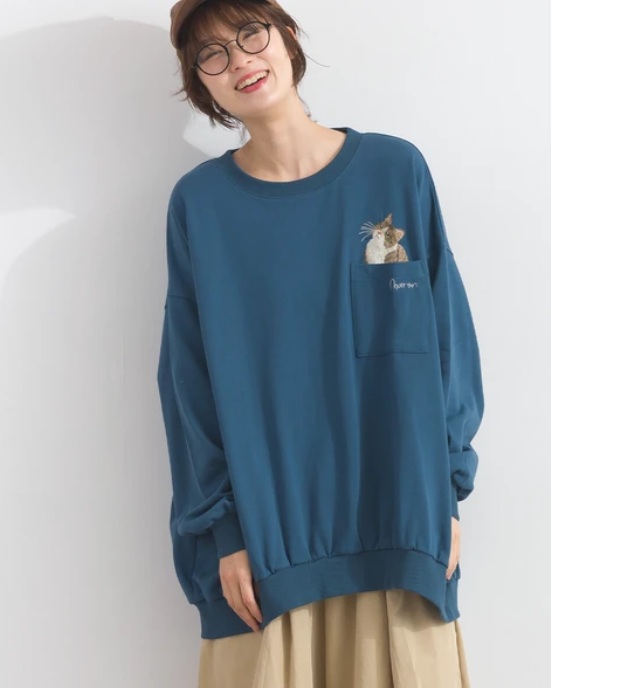 F0355 刺繡長袖衫-貓